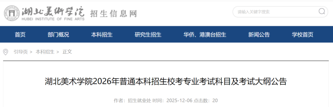 本公告为方便考生了解考试内容发布,最终以后期发布的《湖北美术学院2026年本科招生简章》为准,学校保留因政策变更或不可抗力因素调整考试方案的权利。