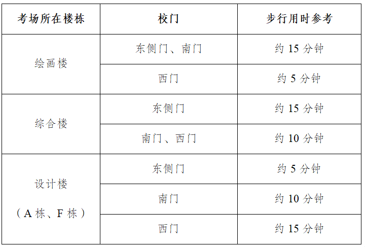 在四川美术学院虎溪校区考点参加考试的考生,可从校园东侧门、南门、西门进出考点。